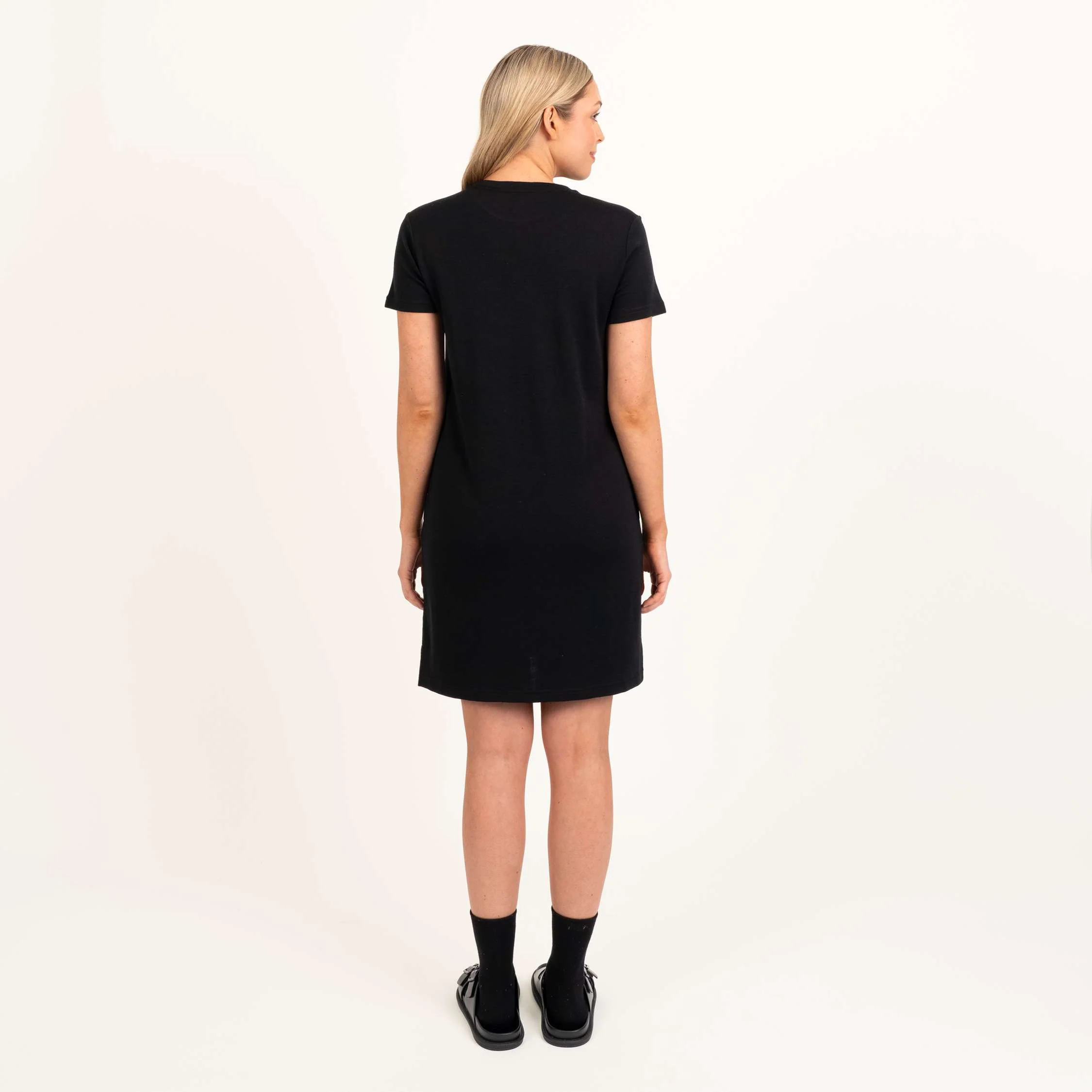 Klassinen T-paitamekko Mia on valmistettu North Outdoorin suositusta merino-bambumateriaalista. Tuplaneuloksen ulkopinta on hengittävää, mulesing-vapaata merinovillaa ja sisäpuoli pehmeää bambuviskoosia. Merino-bambuneulos sopii hyvin herkkäihoisille ja tuntuu miellyttävän vilpoisalta myös kesähelteillä. Suoran mallisessa, hieman polven yläpuolelle ulottuvassa mekossa on pienet sivuhalkiot sekä aina tarpeelliset taskut. Lyhyet hihat tarjoavat suojaa olan alueelle.